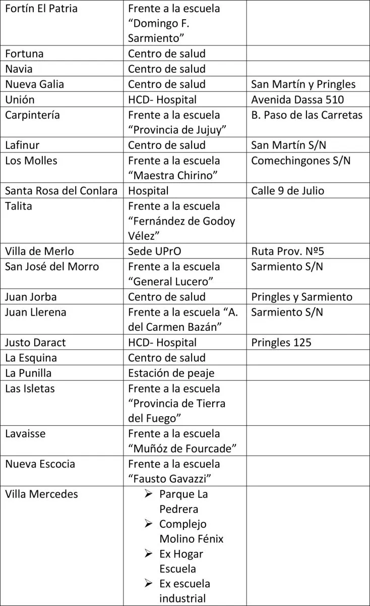 Listado de todos los lugares donde censarán a los beneficiarios de planes sociales