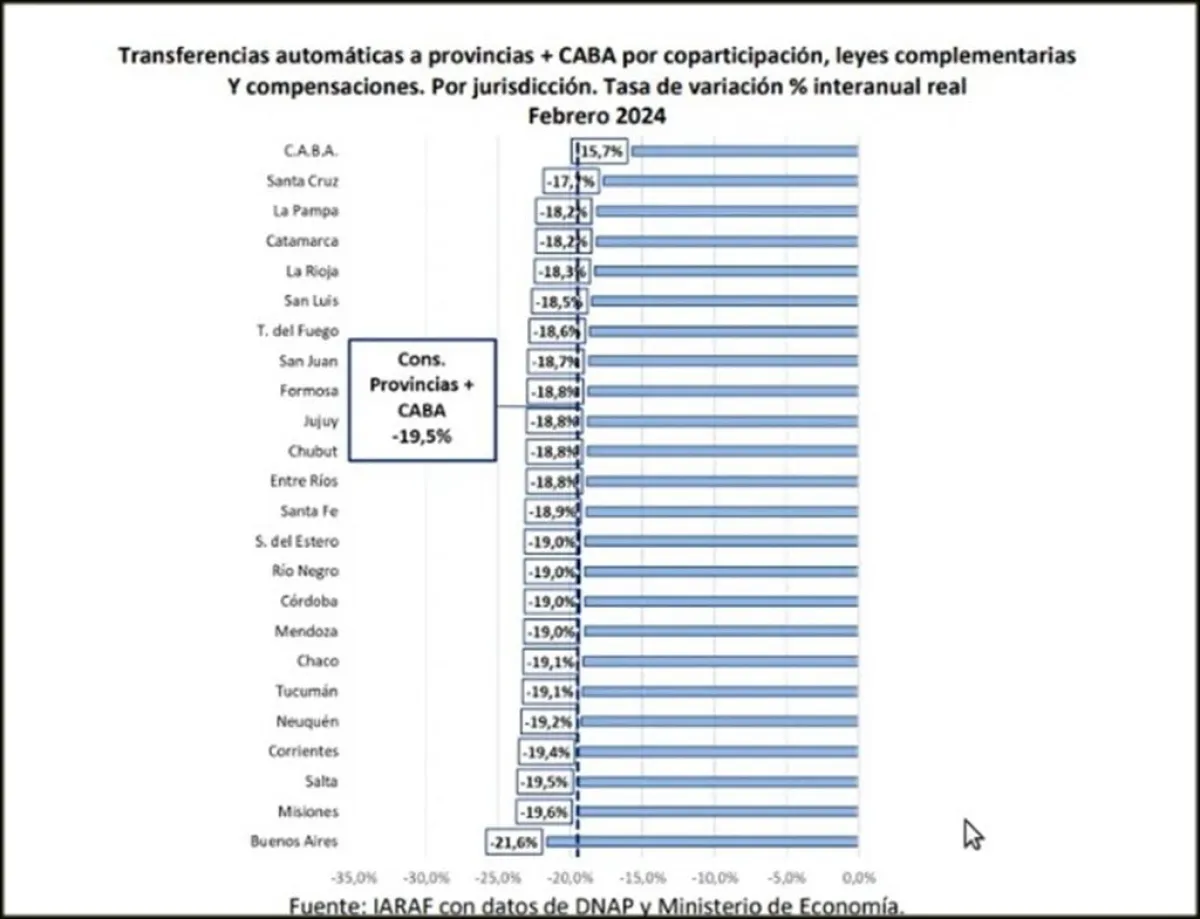 A nivel nacional, la caída de las transferencias a las provincias alcanzó el 20% y los analistas la consideran la peor caída en 45 meses.