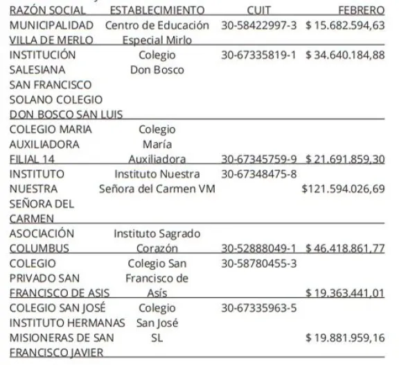 Conocé el monto del subsidio que recibieron los colegios privados de Villa de Merlo