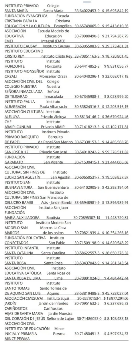 Monseñor Orzali es la institución que más recibió con más de 30 millones. El Mirlo, a través de la municipalidad, 15 millones. El listado completo de la provincia.