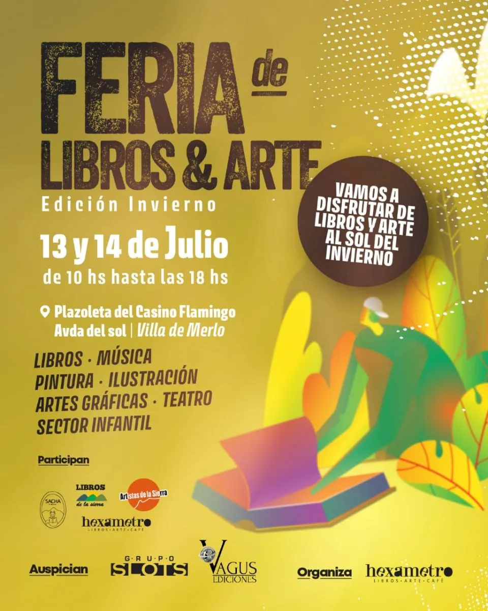 Villa de Merlo se prepara para una nueva celebración cultural en su edición de invierno, donde los libros, el arte y la música convergerán en un evento único. La cita será el sábado 13 y domingo 14 de julio, en la plazoleta ubicada en la intersección de la avenida del Sol y avenida Eva Duarte, de 11:00 a 18:30.