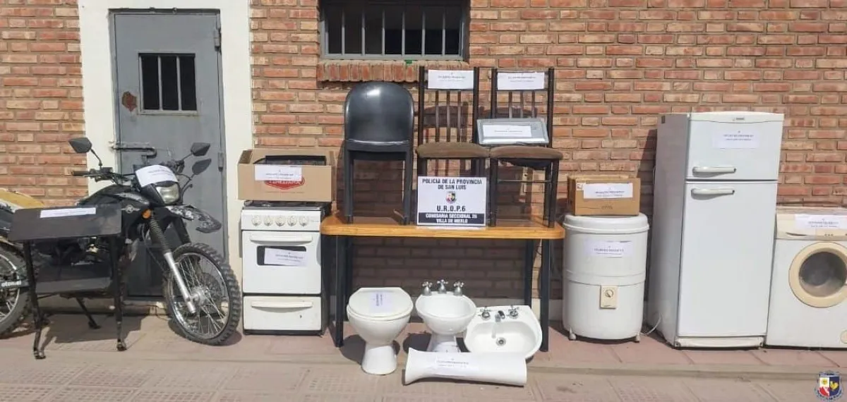 En ese sentido, en las últimas horas se logró la recuperación de los elementos: un juego de sanitario con sus respectivas griferías, varios elementos de vajilla, utensilios de cocina, una motocicleta de Skua 150 cc, una cocina, dos lavarropas, una mesa de madera, cuatro sillas, un DVD, una mesa de televisor y una heladera, los cuales quedaron a disposición de la Justicia provincial.