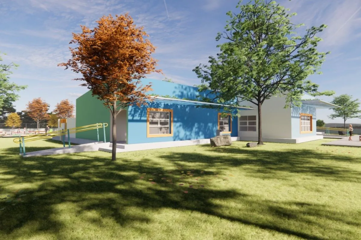 El nuevo edificio también contará con un patio de formación y juegos, un área de espera para padres y un ingreso principal con portón corredizo, diseñado para permitir la circulación peatonal y vehicular de manera fluida y segura.