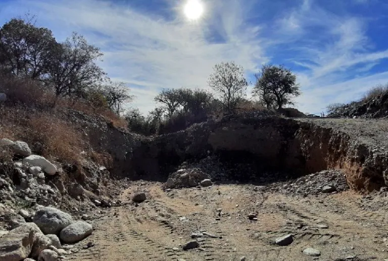 Si bien existe una veda total de extracción de áridos, vigente desde diciembre del 2023, la actividad ha continuado de manera esporádica e ilegal, según las denuncias ambientales de los vecinos. Las crecidas del arroyo provocan desbordes sobre las propiedades privadas, comprometiendo viviendas, caminos rurales, alambrados y postes de luz que inhabilitan el acceso a la energía para producir. Cuando el arroyo crece, todas las barrancas generadas por la extracción de áridos se liman y con el tiempo se desmoronan.