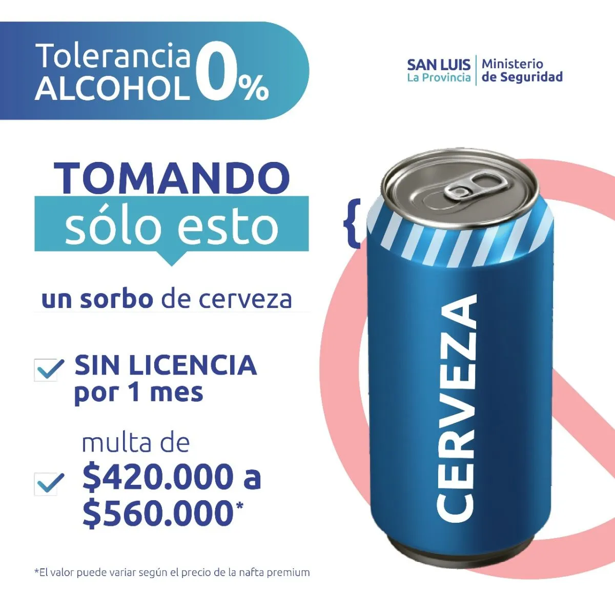 Un sorbo de cerveza puede costar más de 420.000. No es que sea una cerveza premium o con fórmulas mágicas. Ese es el monto mínimo de la multa por manejar con alcohol en la sangre. Y un simple trago de una lata de cerveza ya es detectado por el alcoholímetro.