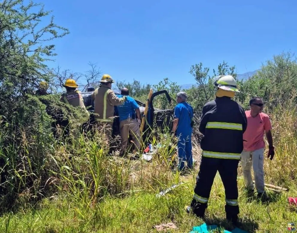 Tras el accidente, la conductora quedó atrapada en el interior de la camioneta, por lo que personal de Bomberos Voluntarios de Villa de Merlo y de Bomberos de la Policía realizaron las tareas de rescate correspondientes, cortando los hierros del habitáculo.