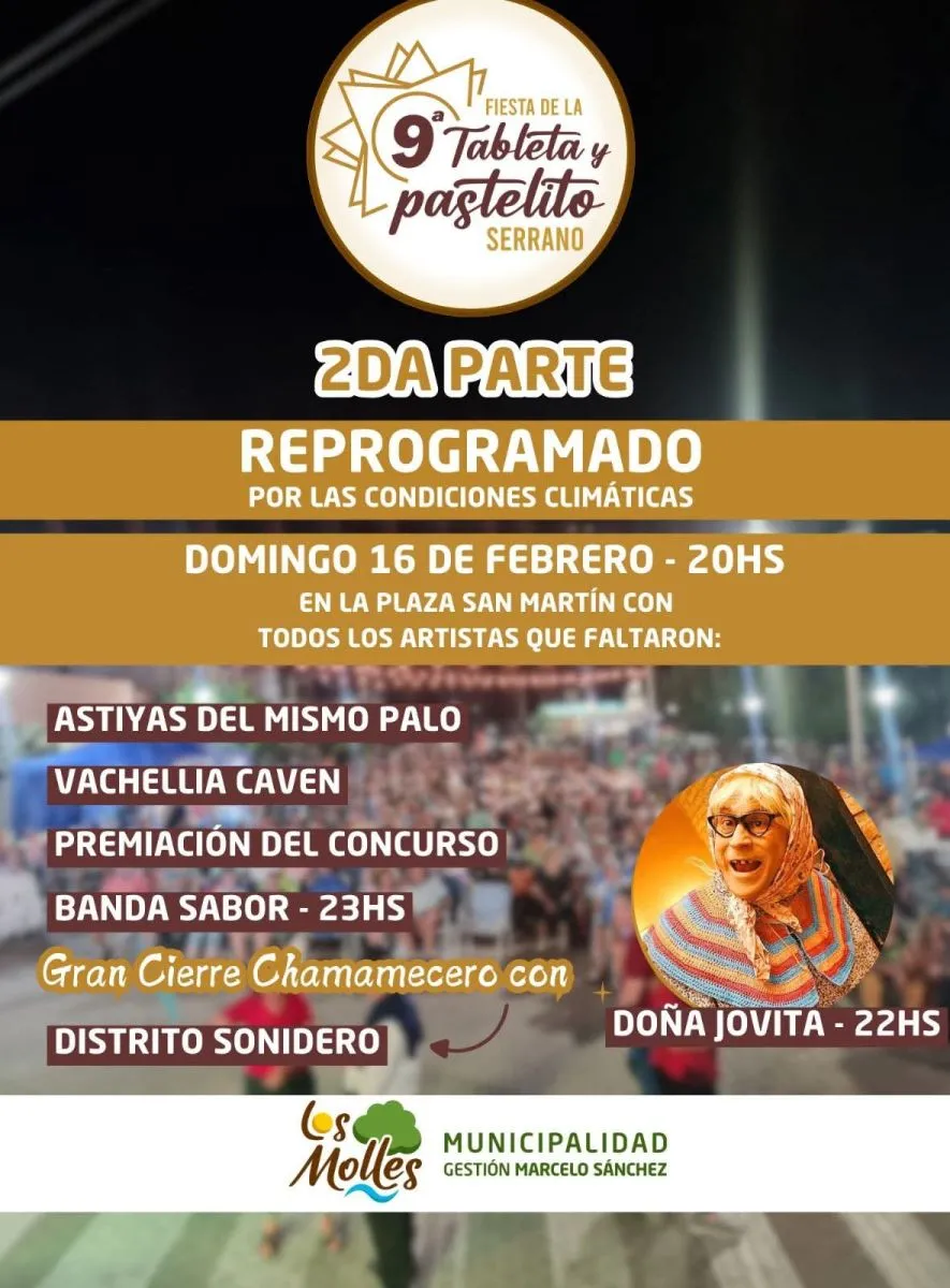 Debido a las condiciones climáticas, el festival en Los Molles tendrá una segunda parte este domingo 16 de febrero desde las 20:00.