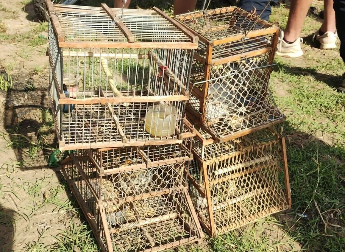 Tenían cuatro trampas de madera y alambre, en las que mantenían cautivas cuatro aves: dos picahuesos, un reina mora y un jilguero.