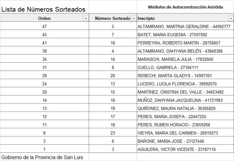 Carpintería y Cortaderas: listado de familias sorteadas por el plan “Tenemos Futuro”