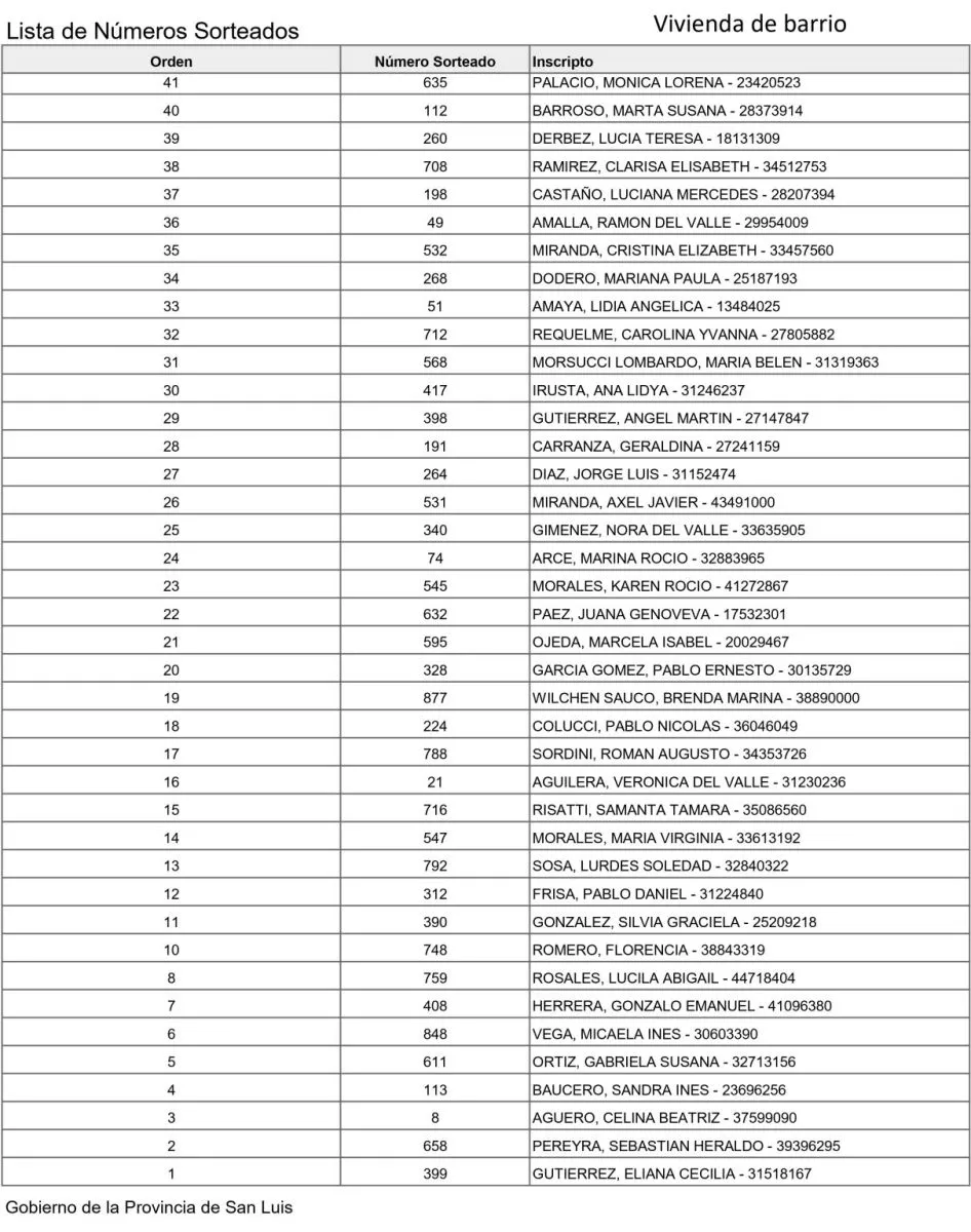 Se conoció este lunes los 40 favorecidos por el sorteo de nuevas viviendas sociales en Villa de Merlo. Veinte se construyen en el barrio El Rosedal y veinte en el barrio Los Troncos. Se habian anotados 887 personas para acceder a una vivienda. El resultado del sorteo favoreció a las siguientes personas: