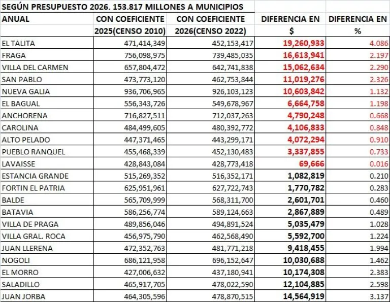 En diciembre de 2025, con la actualización oficial de estos coeficientes, se definió el nuevo esquema que regirá durante al menos una década. El resultado: un mapa con municipios “ganadores” y “perdedores”.