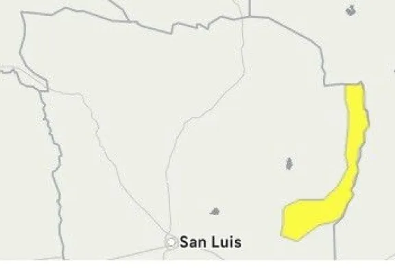 El SMN emitió este sábado un alerta amarillo por posibles tormentas fuertes que afectarán a Villa de Merlo y la región (ver gráfico).
