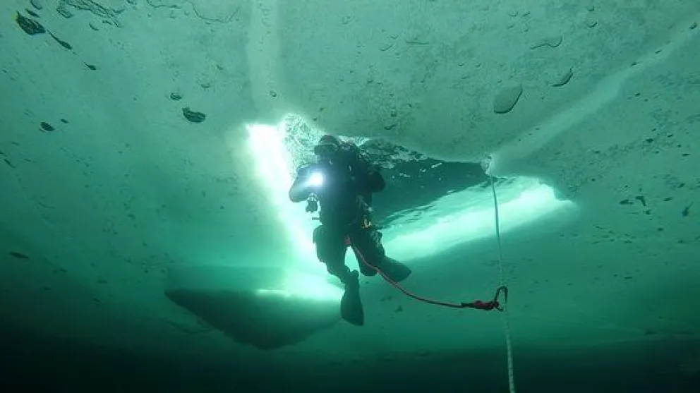 Filman un documental sobre buceo bajo hielo en el Salto del Tigre